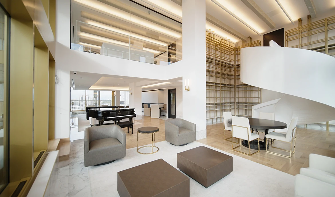 MAA offers grandiose common areas where every detail is thought out to provide a sumptuous and cosy environment. Luxurious amenities await you – Scandinavian spa, hammam, sauna, relaxation areas, outdoor terrace, wine bar, and a well-equipped gym.